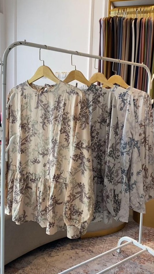 Blouse Silky Flower by Mahdis Scarf hadir dengan bahan satin silky yang lembut dan motif bunga elegan, memberikan sentuhan feminin dan nyaman untuk gaya sehari-hari maupun acara spesial.